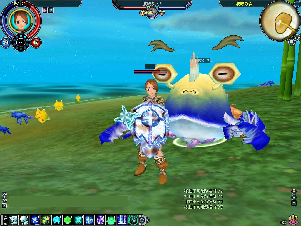 キングボギー このMOBも初めて見ました^^; SI以降実装されたMOBなのでしょうか? 結構 大きかったので、狩り甲斐がありま・・・・せんでした シェイプボアーとキングボギー共に私とのLV差がありましたので、DROPは一切無しでした LV15前後の方ならば適性LV!?かと思いますので、狩りに逝かれてはどうでしょうか? |