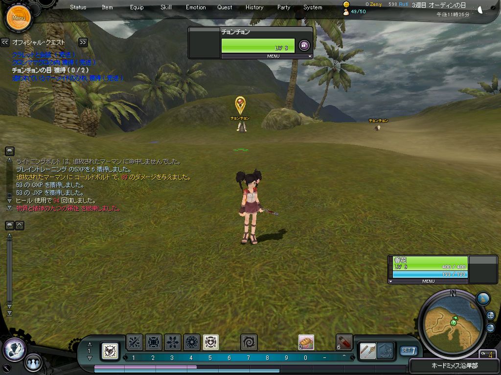 RO2では、調査クエストが結構ありますね。 そこで今回は、分かりずらかった物のSS(スクリーンショット)を載せます。 (今回は、あまりプレイしていませんので初期のクエのSSばかりです。m(_ _)m) ↓の画像をクリックすれば画像拡大されますので、画像の右下のミニマップを見れば大体の場所は 分かると思います。 ホードミメス沿岸部MAP 貝殻(南ホードミメス海峡) 土の塊(クエスト:海底調査) チョンチョン(クエスト:チョンチョンの目獲得) マーマンの村