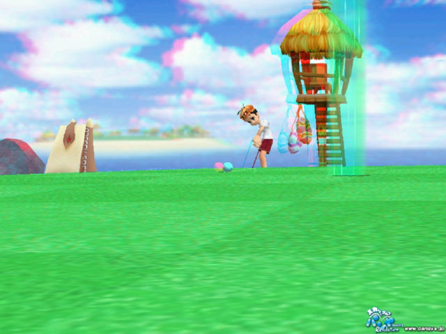 フリフオンライン ~3D(立体視)~ http://focmmo.blog.shinobi.jp/Entry/61/ MMOを3Dでプレイ http://focmmo.blog.shinobi.jp/Entry/43/ MMOを3Dでプレイ2 http://focmmo.blog.shinobi.jp/Entry/81/ ------------------------- 今回は、ゴルフゲームのパンヤを3Dでプレイしてみようかと思いました・・・・ うまくいけばゲーム動画としてニ○ニ○動画にアップロードをする事を考えていました。 ○コ○コ動画がH264コーデック対応したのでかなり綺麗に作れそうでしたので しかしながら実際にパンヤを3D化してみますと、こんな感じになってしましました 何故か本体のキャラが3D化されていません。 たぶんこれは、キャラを3Dで作成していないのではないかと思われます。 ポンタは、耳だけが3D化されてました^^; あと3D化して3Dメガネ(赤青メガネ)をかけてプレイしますとスイングバーが見えなくなります^^;; ・ ・ ・ 結論としては 3D動画(アナグリフ)としては楽しめるかもしれませんが、ゲームとしてはプレイ困難です。 |