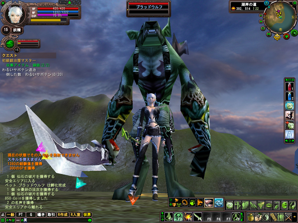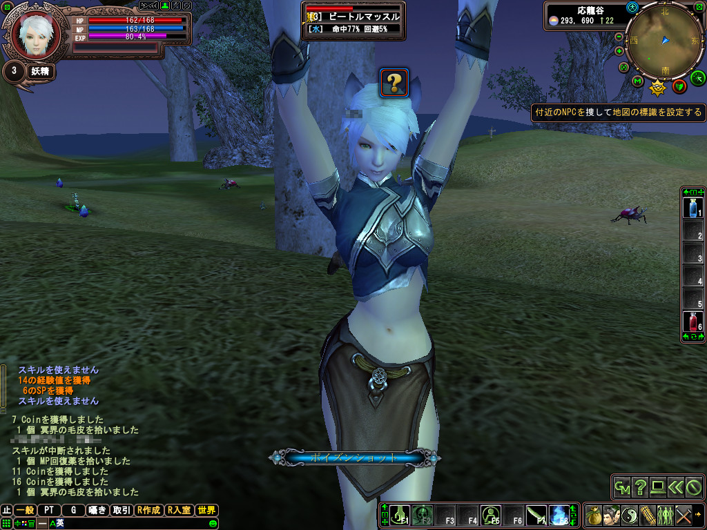 仕方ないので、自分のLVが1でしたがLV3のMOBを狩りました。まあ、何とか狩れるものです^^;