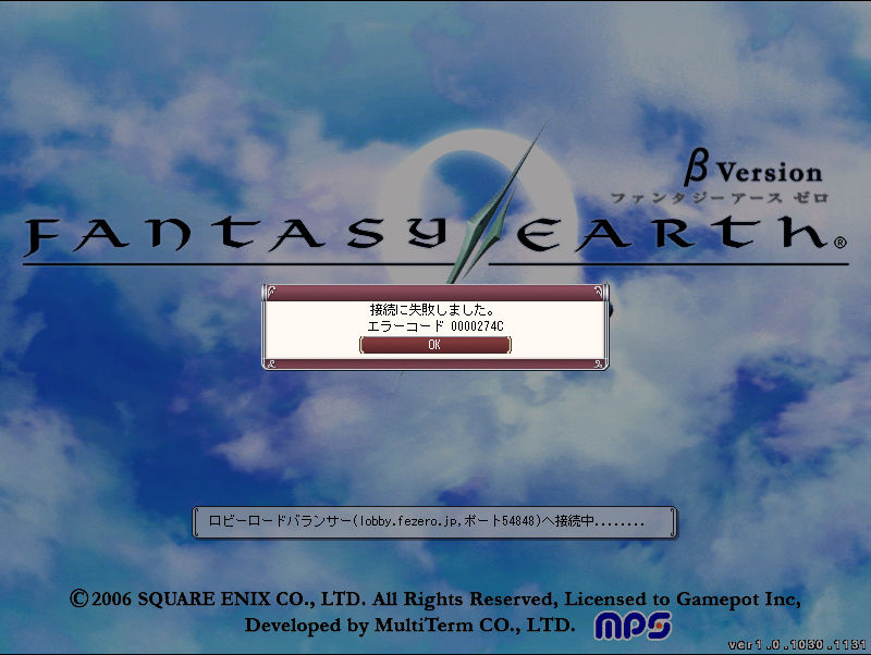 ラペルズにちょっと飽きてきたのとファンタジーアースに興味がありましたので、垢取りと蔵のDLしました 8日の夜12時ころDLを完了したのですが・・・・ 9日 朝8:00 蔵をインストールして接続してみるも「接続に失敗しました エラーコード 0000274c」が出ます 検索で調べてみますと ファンタジーアース のファンサイトのBBSに上記のエラーについて書いてありました 2005 10/27 18:27 ( ゚д゚) (つд⊂)ゴシゴシ (;゚д゚) (つд⊂)ゴシゴシ 2005年!? ん~ 2005年からサーバー強化されてないのでしょうか? 10月に書き込みなので1年以上前ですよ^^;