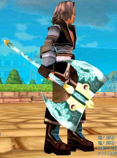 私って何となく使用不使用に関わらず武器を集めたくなる性分です^^; 通常は、片手剣+盾というスタイルなんですけど、他の人が持っている斧とか見ましたら「あ~カッコいいな 装備してみたいな~」と思ってしまいます。 そんなこんなで、LV44になった時にファイター用の武器を露店で買ったりして集めてみました。 ゴブリンキングのポールアックス+3 露店で18銀で購入