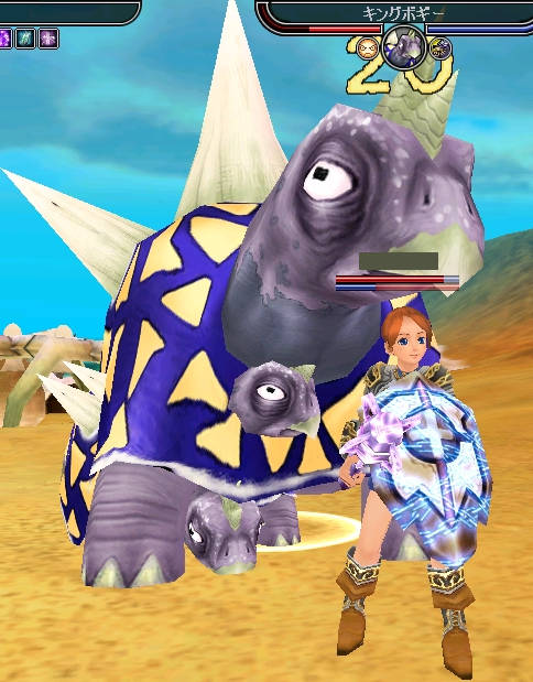 キングボギー このMOBも初めて見ました^^; SI以降実装されたMOBなのでしょうか? 結構 大きかったので、狩り甲斐がありま・・・・せんでした シェイプボアーとキングボギー共に私とのLV差がありましたので、DROPは一切無しでした LV15前後の方ならば適性LV!?かと思いますので、狩りに逝かれてはどうでしょうか? |