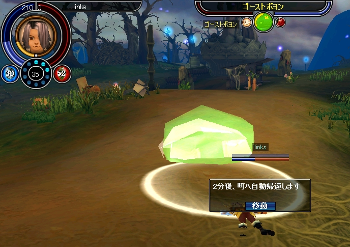 今日は、前々から気になっていた「ゴーストポヨン」に特攻をしてみました。 他のMOBに絡まれるのは嫌なので「スネアキック」で敵のタゲが来ない所まで引きます。 引いてみたのはいいのですけど・・・攻撃力が半端じゃないです 一回の攻撃でHPが半分くらい削られます^^; 今のHPが約1000くらいなので大体500くらいのダメを受けているかと思われます