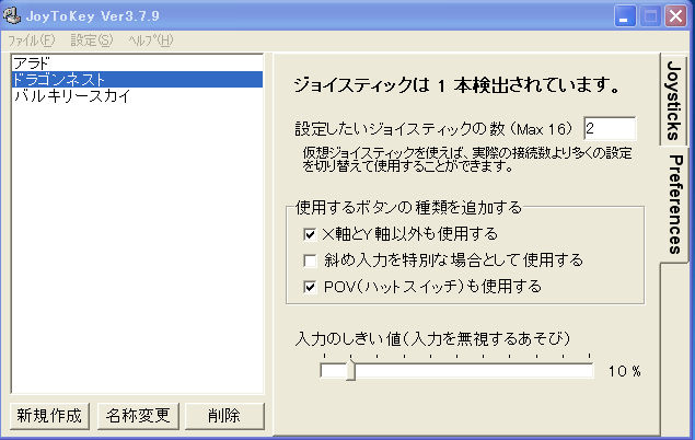 ドラゴンネストをプレイするのにキーボード操作では、しんどいので私は PS2のコントローラを接続して遊んでいます。 公式のコントローラ設定ソフトがありますが、専用のコントローラじゃないの と設定が面倒だったのでゲームパッドにキーボード/マウスの操作を割り当 てるソフト JoyToKey を使用してます。 下記にJoyToKeyの設定 画像を載せます。 (画像をクリックすれば大きな画像がでます。) アナログスティック 左 → キャラの移動 〃 右 → 視点変更 ▲ → スキル4 ■ → スキル3 ● → 拾う × → ジャンプ L1 → スキル1 L2 → スキル2 R1 → 通常攻撃 R2 → 特殊攻撃 方向キー(上下左右) → 上をスキル5 (後々に下左右にスキル6,7,8を登録 又はポーション登録!?) ▲▲▲▲▲▲▲▲▲▲▲▲▲▲▲▲▲▲▲▲▲▲▲▲▲▲▲▲▲▲▲▲ 追記2010/0612 ボタン9にShift(シフト)キーを登録 これで、アナログスティック 左を押し込みながら方向キーを押せば 回避が出来ます。 ▲▲▲▲▲▲▲▲▲▲▲▲▲▲▲▲▲▲▲▲▲▲▲▲▲▲▲▲▲▲▲▲ ps2のコントローラは、下記みたいなコントローラコンバータを使用してUSB接続しています。 ちなみに私が使用しているのは、CYBER Gadget製です。 非常に重宝してますがもう販売してないみたいです^^; XBOX360コントローラをUSBでPCに接続 Microsoft Xbox 360 Controller for Windows ![]() ■■■■■■■■■■■■■■■■■■■■■■■■ AR(拡張現実) 2010/06/12追記 公式HP → スペシャル → ライブラリー → AR(拡張現実) ドラゴンネストでARを見るためには、WEBカメラとマーカーとAR用ソフトが必要になります。 sample01の画像 sample02の画像 現在の公式には、二種類のマーカーがしかありませんが、KOKIAさんの CDジャケットがARに対応しています。 KOKIAさんのCDジャケット ちなみに下記のアマゾンのリンクをクリックした画像に WEBカメラ向けても認しk(ry |