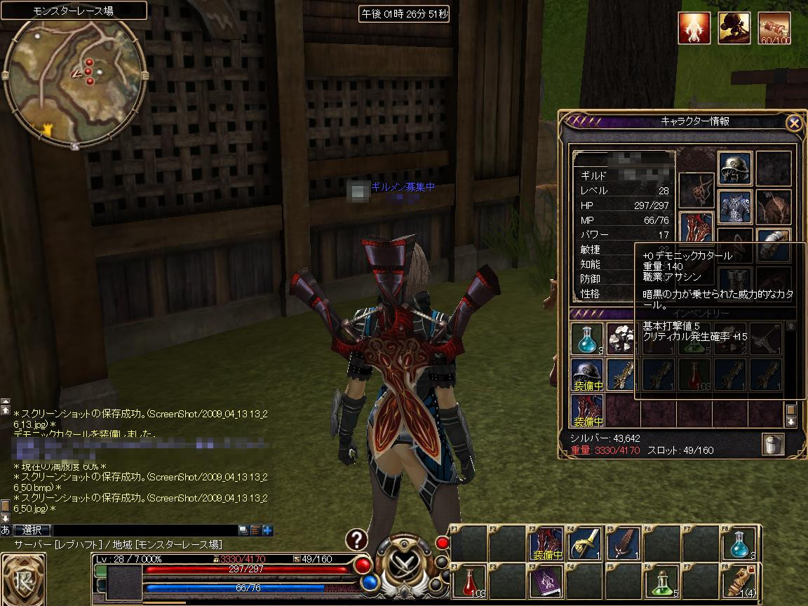 タイトル通りに、久々にR2にログインしてみました。 2.C¥R2を開き R2Client.exeを直接起動してゲームガードを手動アップデートする。 (パッチバージョン 28,29,30でランチャーフリーズする) 4.自動でゲームガードのパッチが当たる 何故!? 5.ゲーム画像まっしろ(真っ黒) → 数分待つと起動^^; そこで今度はメインのアカウントでゲームログインしてみました所 何か違和感が・・・・ 「あれ? このメインキャラって何でこの装備なんだろ?」 「短剣?しか装備してないし、インベントリのアイテムの数少ない・・・・ やられてました>< アカウントハックされてる;; よく考えてみればサブのアカウントはあんまりプレイしていなかったとはいえ、防具を 装備してないしお金もなかったです サブアカもハックされてました・・・・・